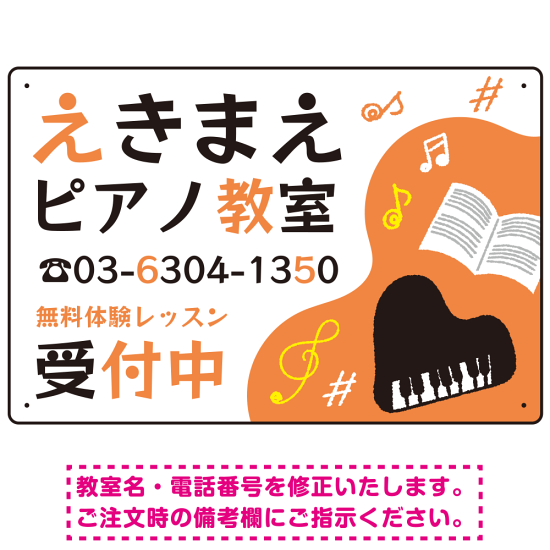 ポップでキュートなピアノ教室向けデザイン プレート看板 オレンジ W450×H300 エコユニボード (SP-SMD444C-45x30U)