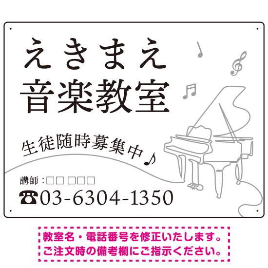 - ご希望の文字内容をご注文時の備考欄やメールやFAXにてご指示ください。※教室名・電話番号の修正費は料金に含まれております。