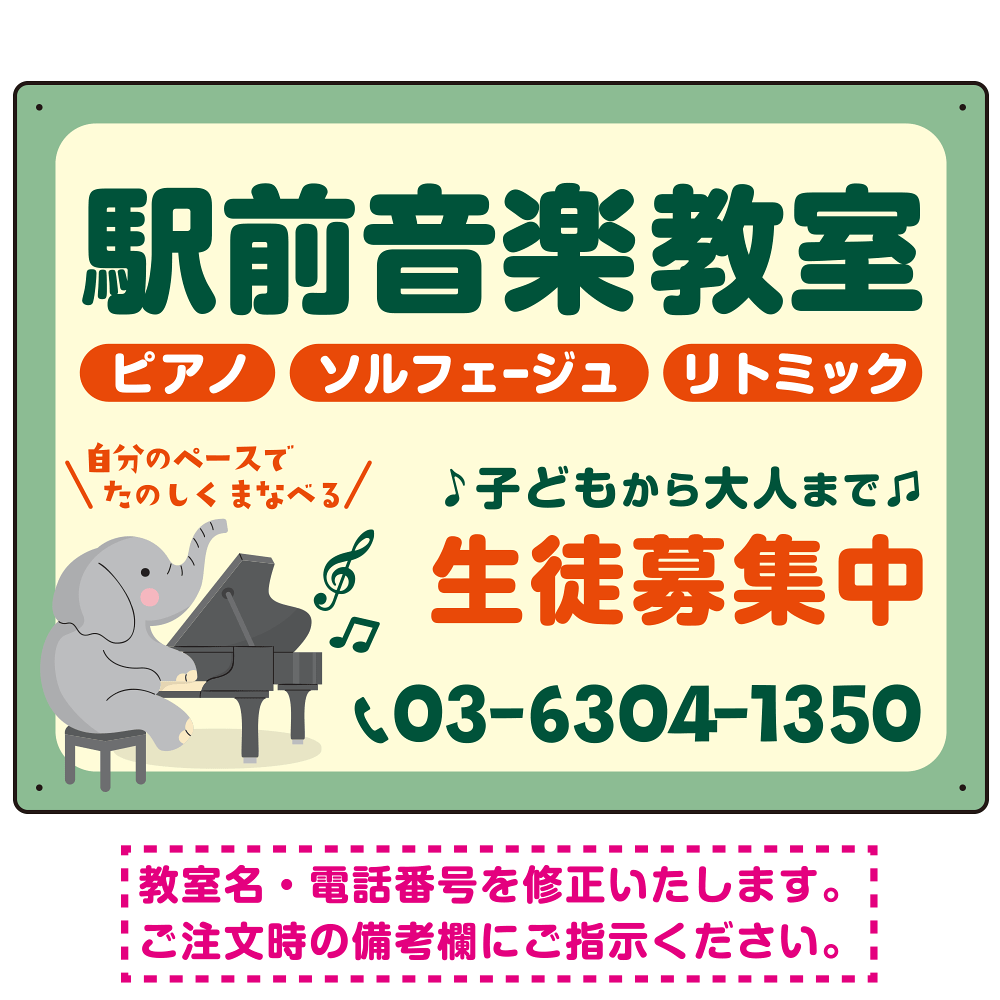 商品説明:音楽教室 ゾウさんイラストデザイン プレート看板 グリーン W600×H450 アルミ複合板 (SP-SMD455A-60x45A)