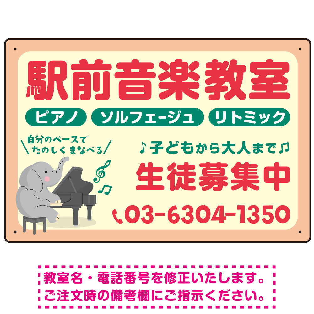 - ご希望の文字内容をご注文時の備考欄やメールやFAXにてご指示ください。※教室名・電話番号の修正費は料金に含まれております。