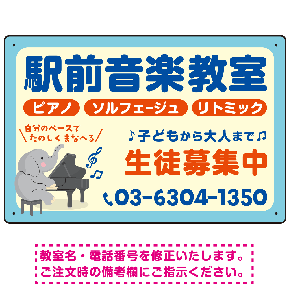 商品説明:音楽教室 ゾウさんイラストデザイン プレート看板 ブルー W450×H300 エコユニボード (SP-SMD455C-45x30U)