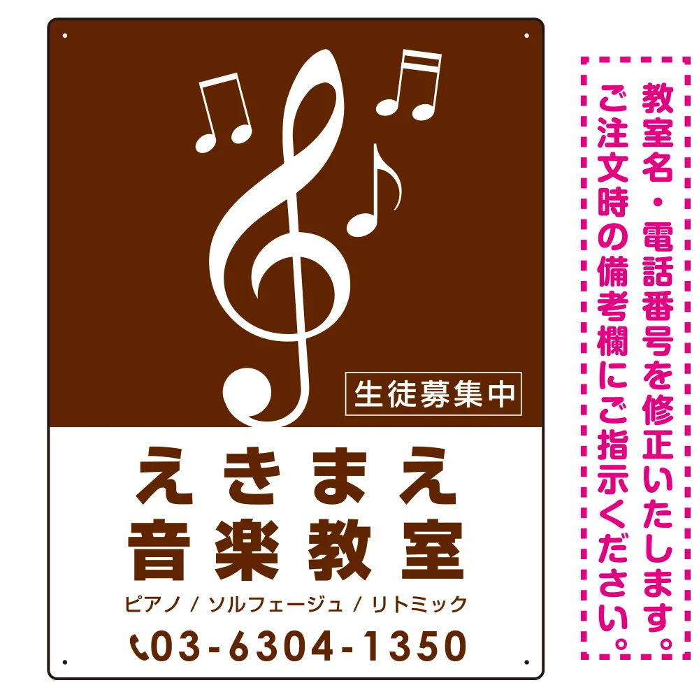 - ご希望の文字内容をご注文時の備考欄やメールやFAXにてご指示ください。※教室名・電話番号の修正費は料金に含まれております。