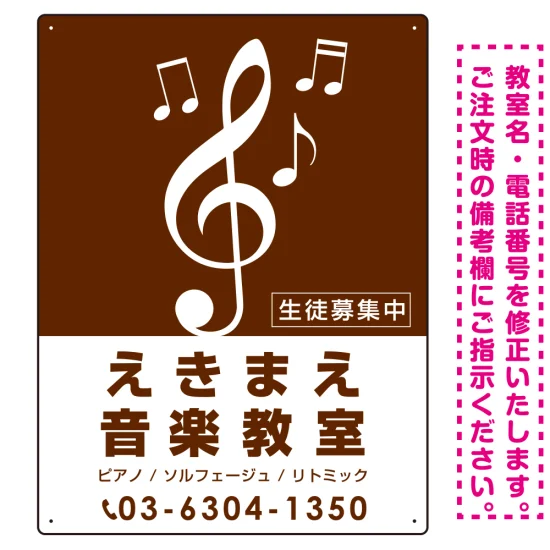 タテ型 大きな音符が目印の音楽教室デザイン プレート看板 ブラウン W450×H600 エコユニボード (SP-SMD459B-60x45U)
