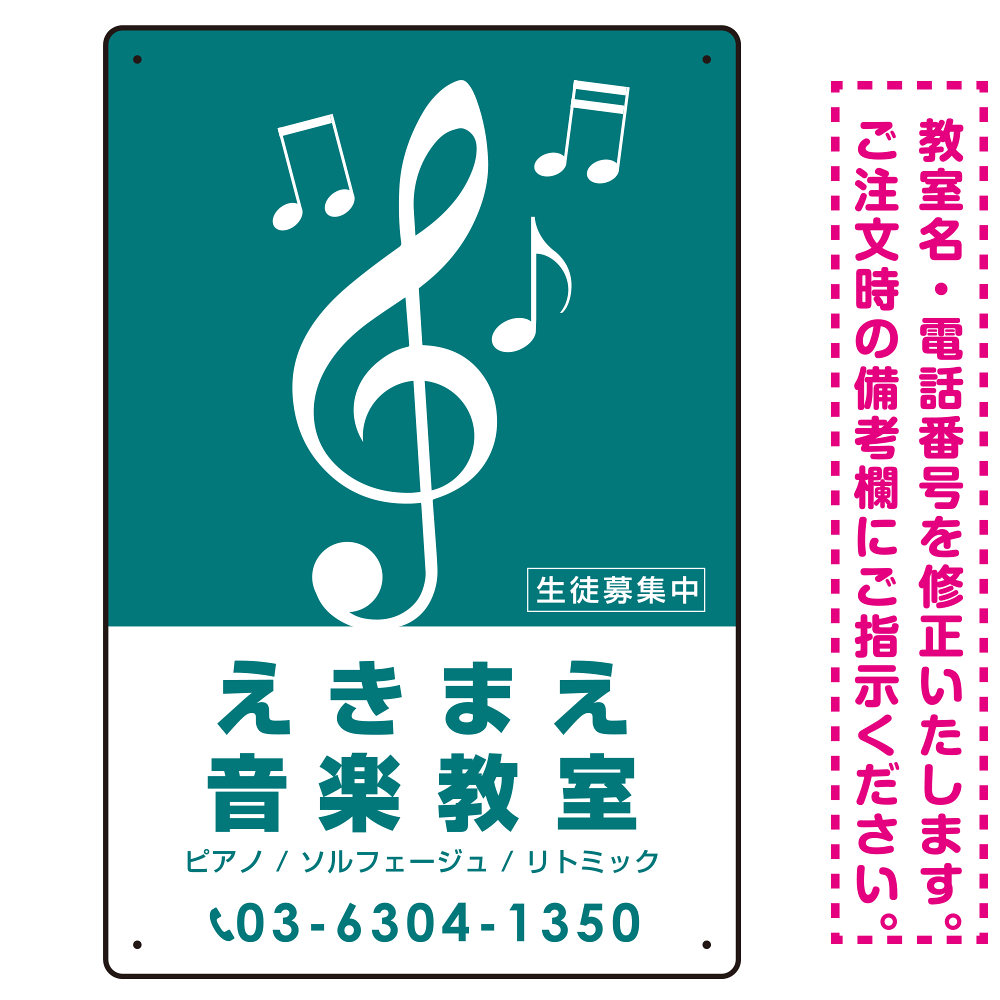 タテ型 大きな音符が目印の音楽教室デザイン プレート看板 グリーン W300×H450 エコユニボード (SP-SMD459C-45x30U)
