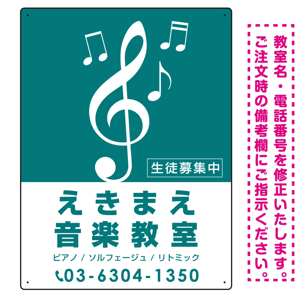 タテ型 大きな音符が目印の音楽教室デザイン プレート看板 グリーン W450×H600 アルミ複合板 (SP-SMD459C-60x45A) の商品詳細