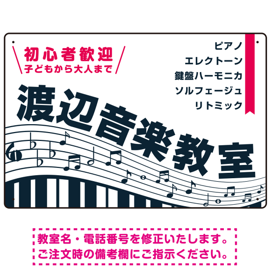商品説明:鍵盤と音符のラインに沿った音楽教室デザイン プレート看板 W450×H300 エコユニボード (SP-SMD461-45x30U)