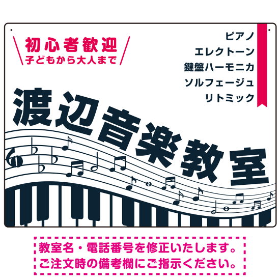 商品説明:鍵盤と音符のラインに沿った音楽教室デザイン プレート看板 W600×H450 エコユニボード (SP-SMD461-60x45U)