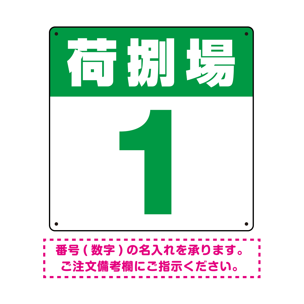 商品説明:荷捌場(荷捌き場) 希望数字入れ オリジナル プレート看板 グリーン 300角 エコユニボード (SP-SMD463C-30U)