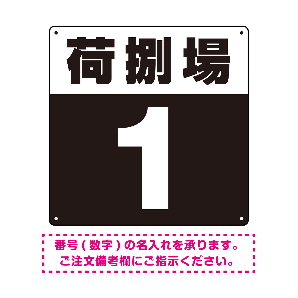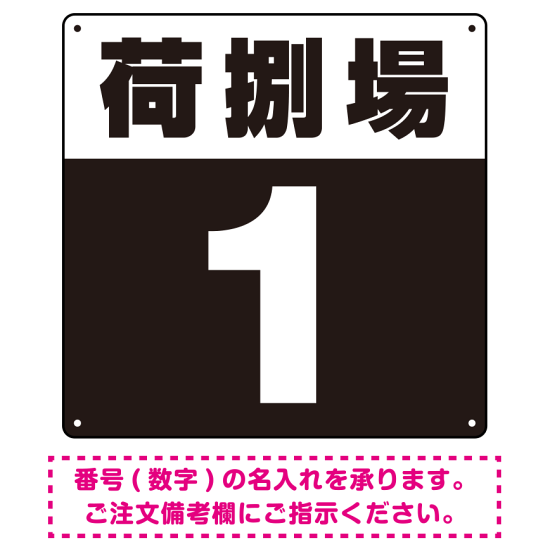 商品説明:荷捌場(荷捌き場) 希望数字入れ 背景カラー/白文字 オリジナル プレート看板 ブラック 300角 エコユニボード (SP-SMD463H-30U)