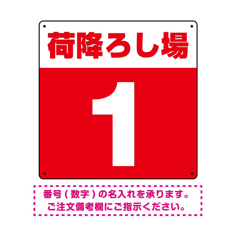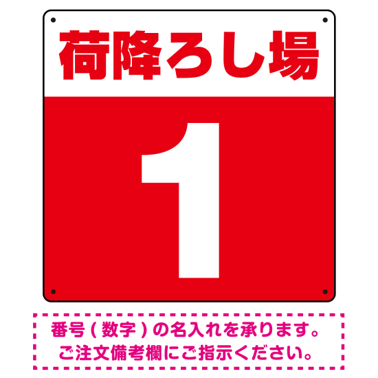 荷降ろし場 希望数字入れ 背景カラー/白文字 オリジナル プレート看板 レッド 600角 アルミ複合板 (SP-SMD464F-60A)