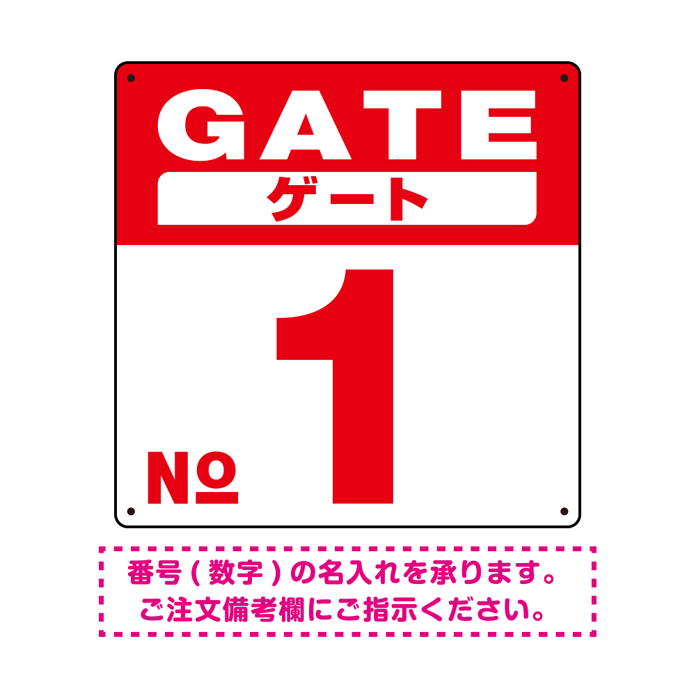 ゲート(GATE) 入り口番号表示 希望数字入れ オリジナル プレート看板 レッド 300角 アルミ複合板 (SP-SMD465B-30A)