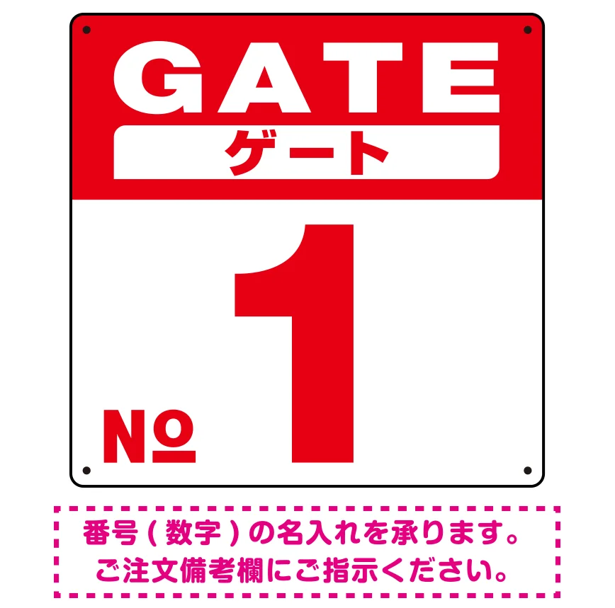 ゲート(GATE) 入り口番号表示 希望数字入れ オリジナル プレート看板 レッド 900角 アルミ複合板 (SP-SMD465B-90A) の商品詳細