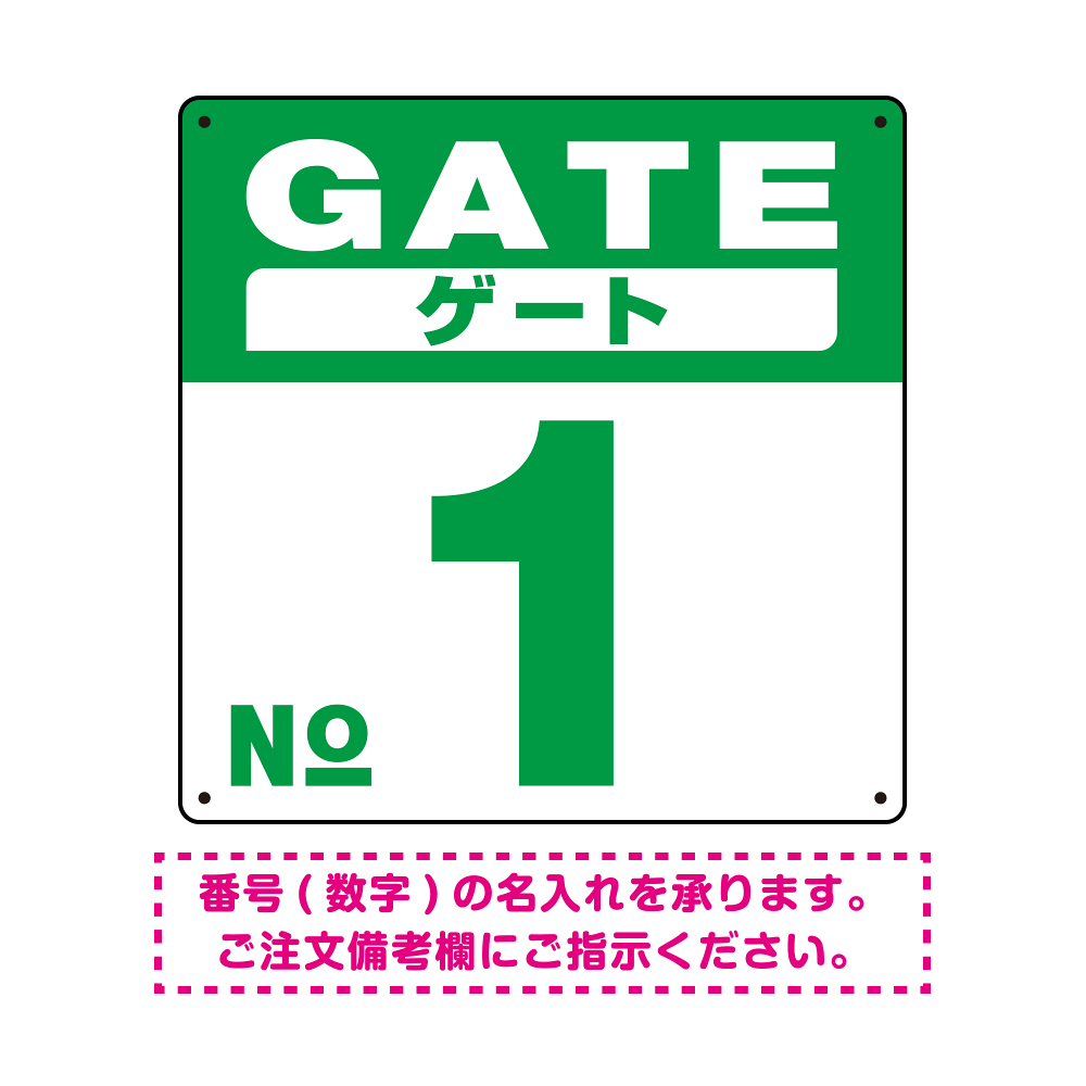 ゲート(GATE) 入り口番号表示 希望数字入れ オリジナル プレート看板 グリーン 900角 アルミ複合板 (SP-SMD465C-90A)
