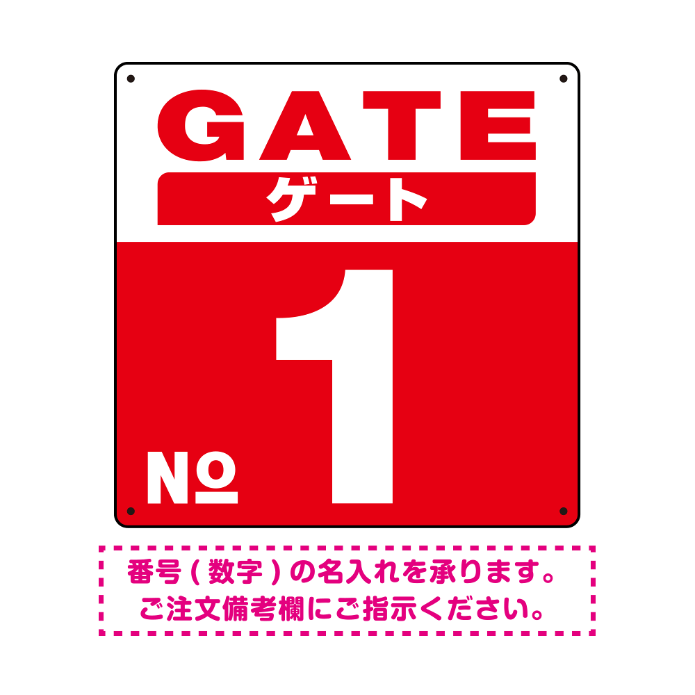 ゲート(GATE) 入り口番号表示 希望数字入れ 背景カラー/白文字 オリジナル プレート看板 レッド 300角 エコユニボード (SP-SMD465F-30U)