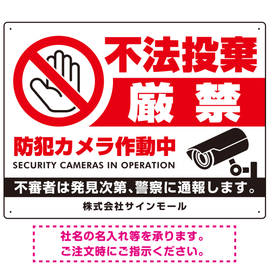 商品説明:不法投棄厳禁 大きな手のひらピクト 厳禁白文字 オリジナル プレート看板 防犯カメラ W600×H450 エコユニボード (SP-SMD473-60x45U)