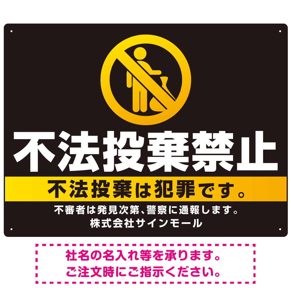 商品説明:ブラック&ゴールド調 不法投棄禁止デザイン プレート看板 W600×H450 エコユニボード (SP-SMD472-60x45U)