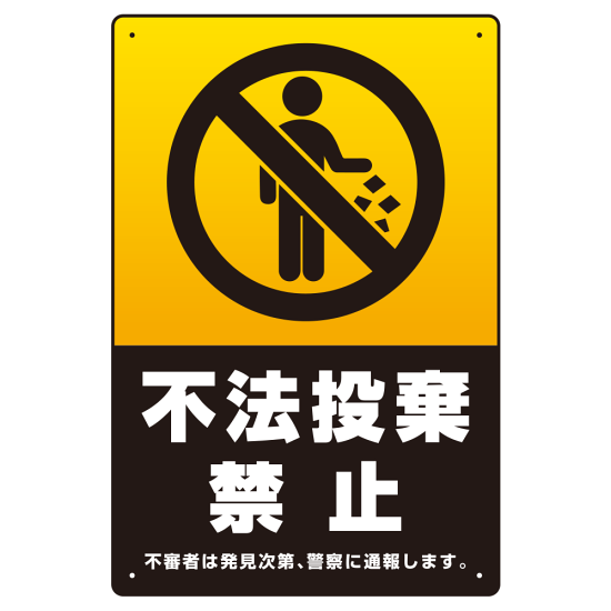 商品説明:タテ型 ブラック&ゴールド調 不法投棄禁止デザイン オリジナル プレート看板 W300×H450 エコユニボード (SP-SMD475-45x30U)