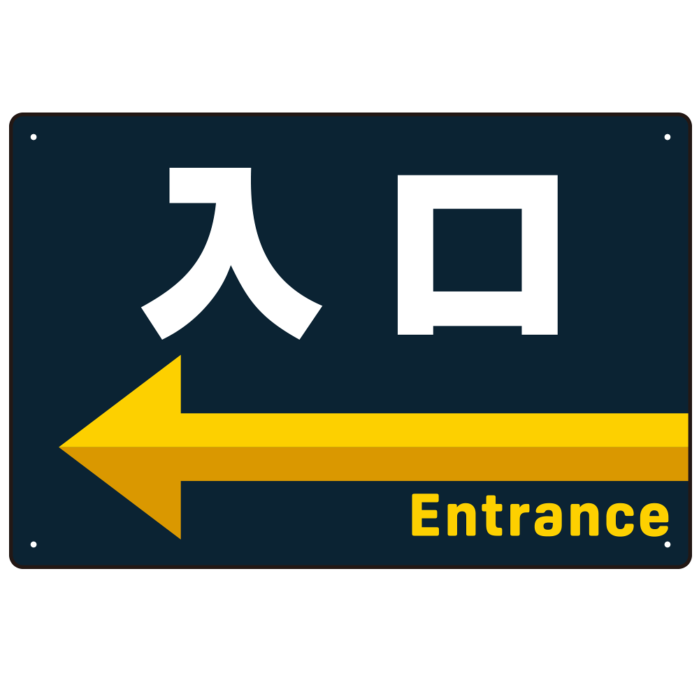 出入口誘導 アイコン風デザイン ネイビー背景 オリジナル プレート看板 入口/左矢印 W450×H300 エコユニボード (SP-SMD492L-45x30U)