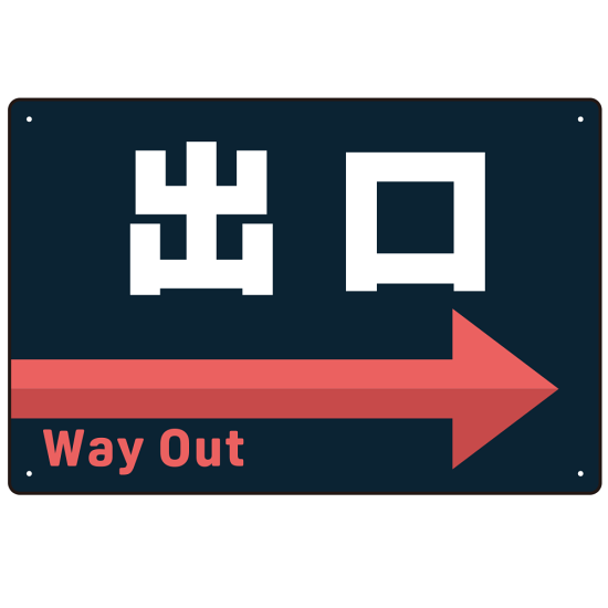 - ダークネイビーに大きな矢印がよく目立つ案内プレート。