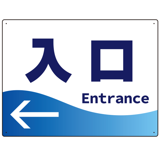 商品説明:出入口誘導 爽やかウェーブデザイン オリジナル プレート看板 入口/左矢印 W600×H450 エコユニボード (SP-SMD495L-60x45U)