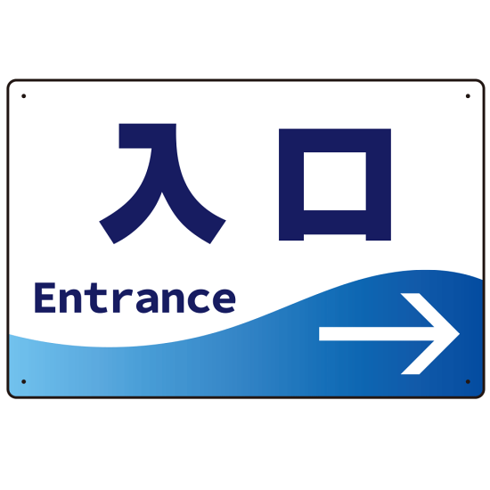 商品説明:出入口誘導 爽やかウェーブデザイン オリジナル プレート看板 入口/右矢印 W450×H300 エコユニボード (SP-SMD495R-45x30U)