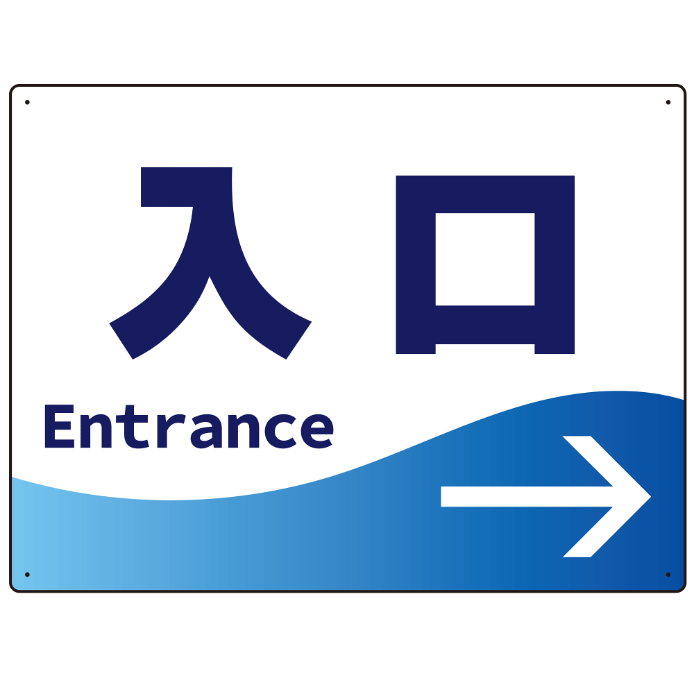 - 出入口誘導 爽やかウェーブデザイン オリジナル プレート看板 入口/右矢印 W600×H450 アルミ複合板 (SP-SMD495R-60x45A)