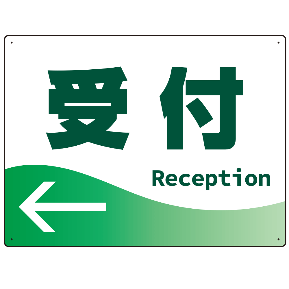 商品説明:出入口誘導 爽やかウェーブデザイン オリジナル プレート看板 受付/左矢印 W600×H450 アルミ複合板 (SP-SMD497L-60x45A)