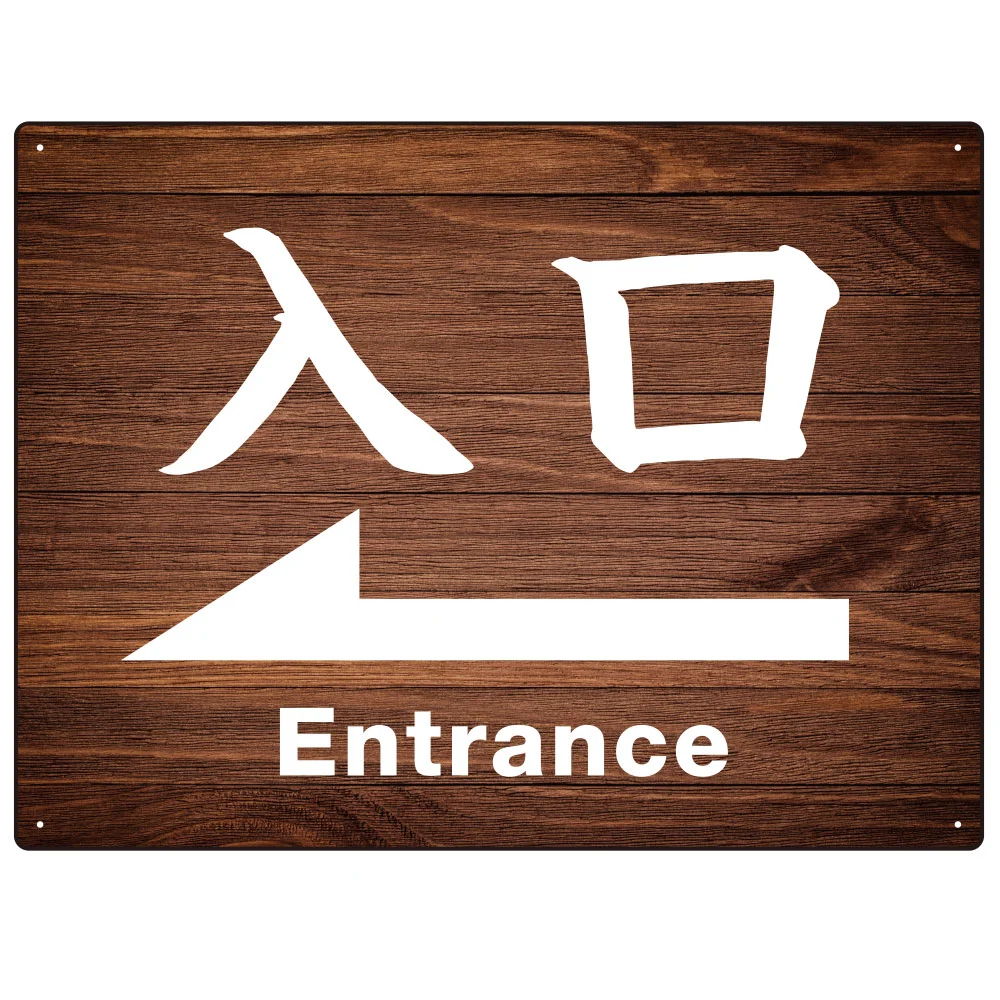 和風な店舗や施設の出入り口案内に。木目柄の誘導プレート看板。