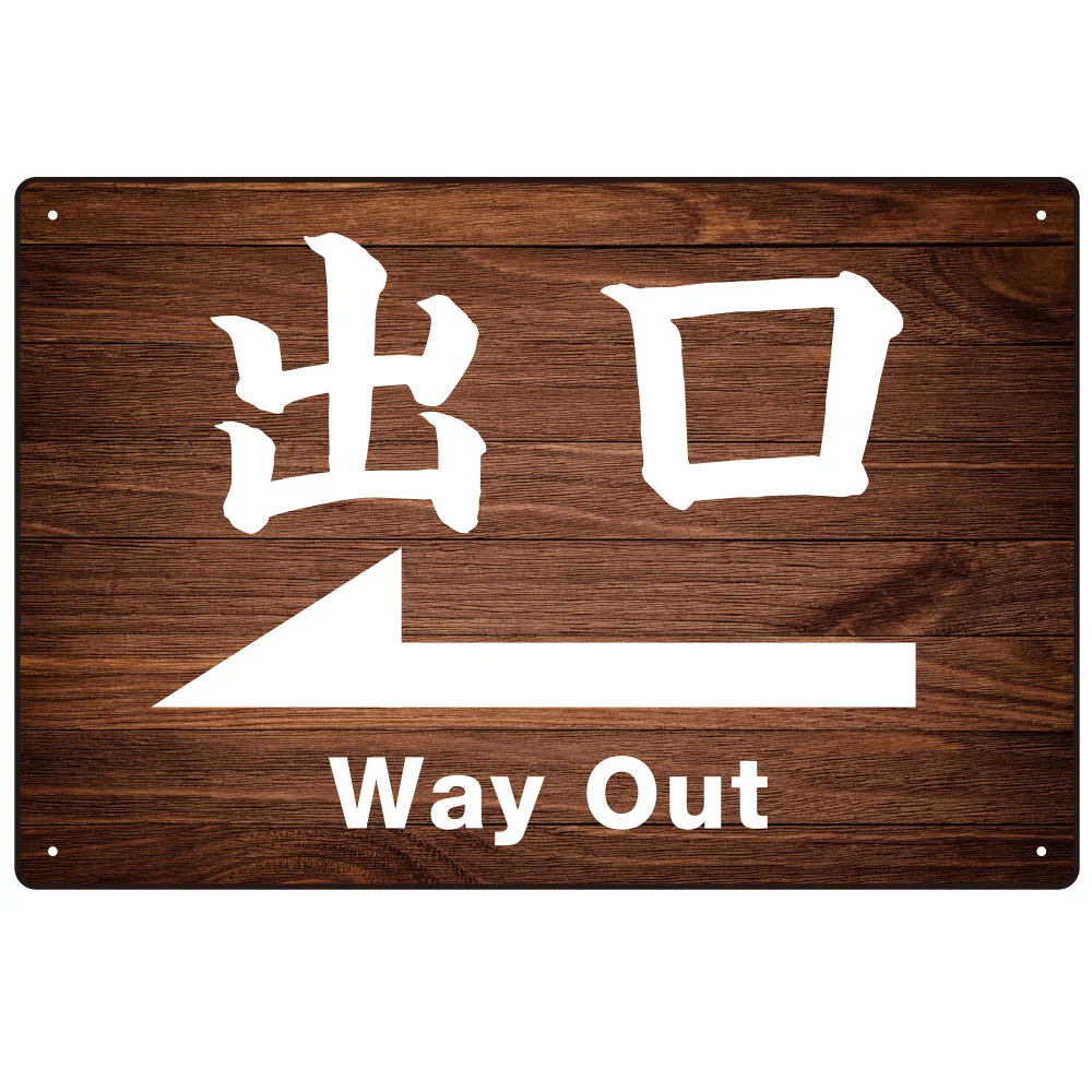 - 濃い目の木目柄に大きな白文字と矢印がくっきり見えます。