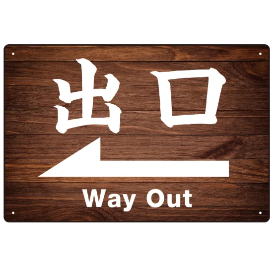 - 和風 濃い目の木目調にくっきり白文字 オリジナル プレート看板 出口/左矢印 W450×H300 アルミ複合板 (SP-SMD499L-45x30A)