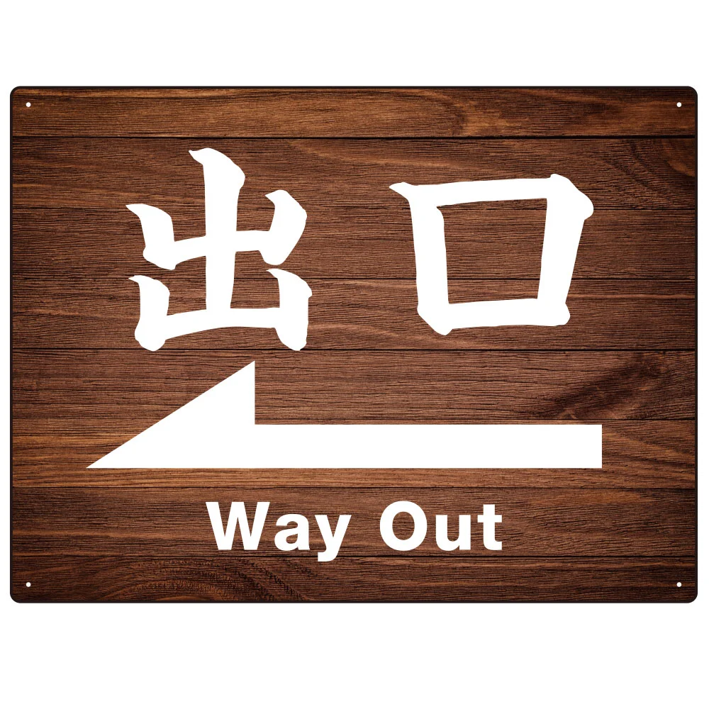 - 濃い目の木目柄に大きな白文字と矢印がくっきり見えます。