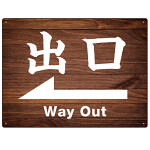 - 和風 濃い目の木目調にくっきり白文字 オリジナル プレート看板 出口/左矢印 W600×H450 エコユニボード (SP-SMD499L-60x45U)