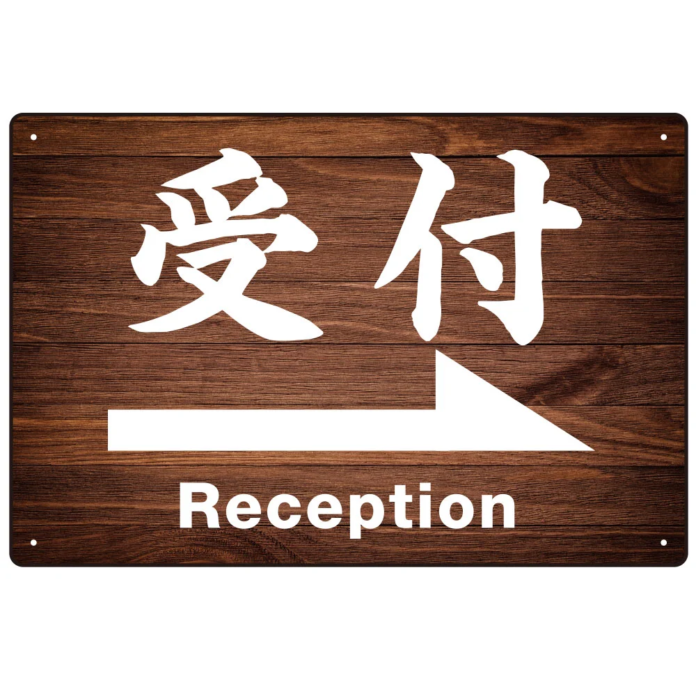 - 和風 濃い目の木目調にくっきり白文字 オリジナル プレート看板 受付/右矢印 W450×H300 エコユニボード (SP-SMD500R-45x30U)