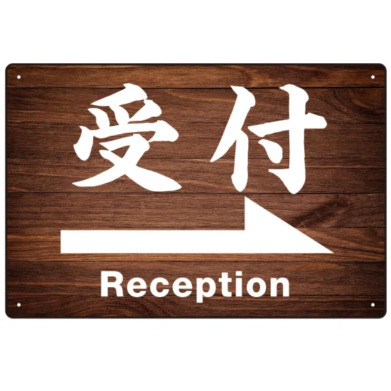 よくある質問:和風 濃い目の木目調にくっきり白文字 オリジナル プレート看板 受付/右矢印 W450×H300 エコユニボード (SP-SMD500R-45x30U)