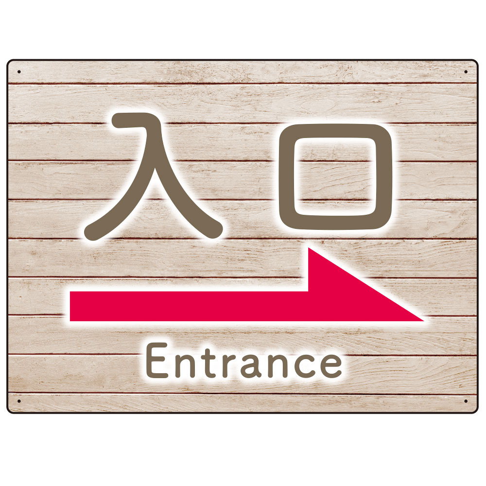 和み系木目調デザイン オリジナル プレート看板 入口/右矢印 W600×H450 アルミ複合板 (SP-SMD501R-60x45A)