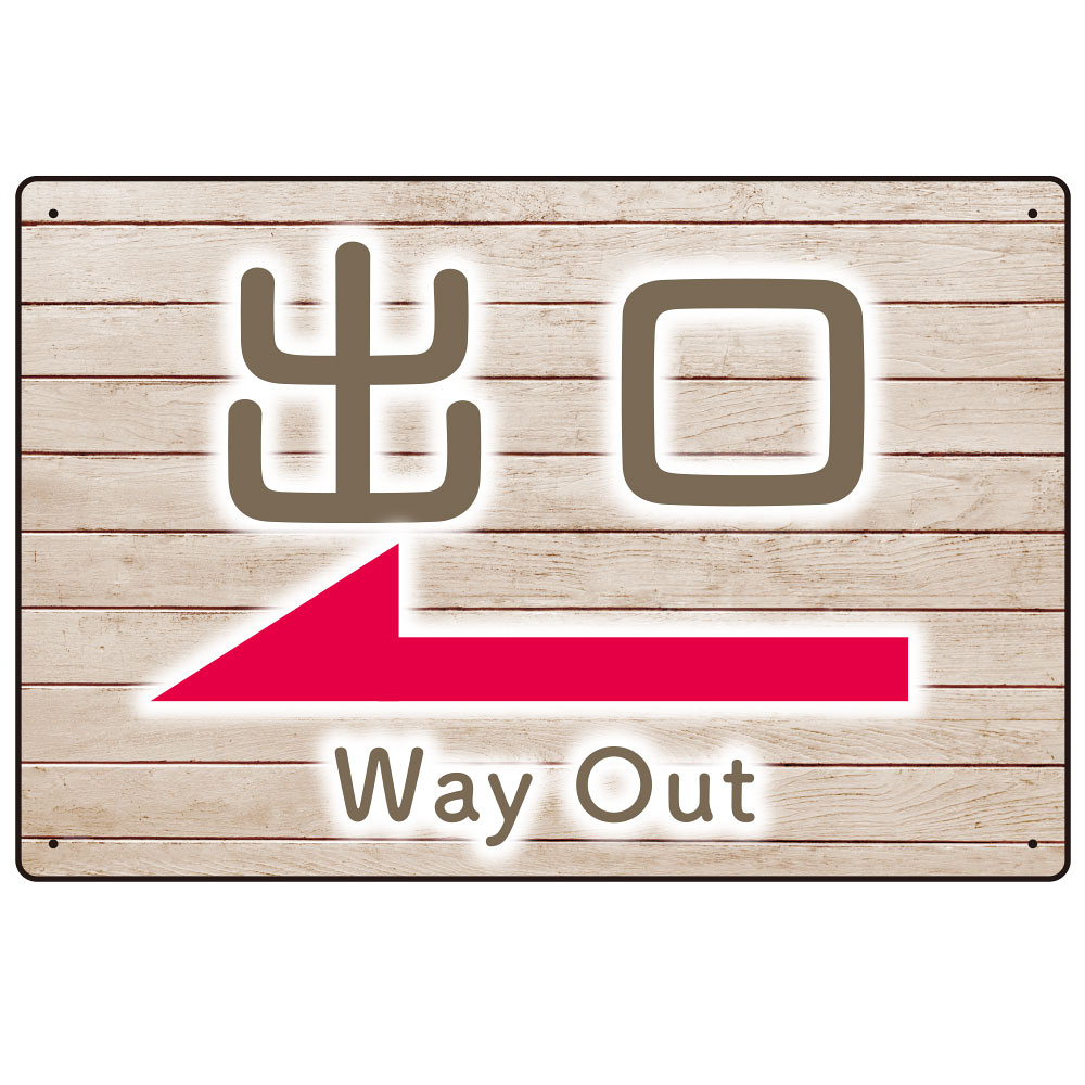 商品説明:和み系木目調デザイン オリジナル プレート看板 出口/左矢印 W450×H300 エコユニボード (SP-SMD502L-45x30U)