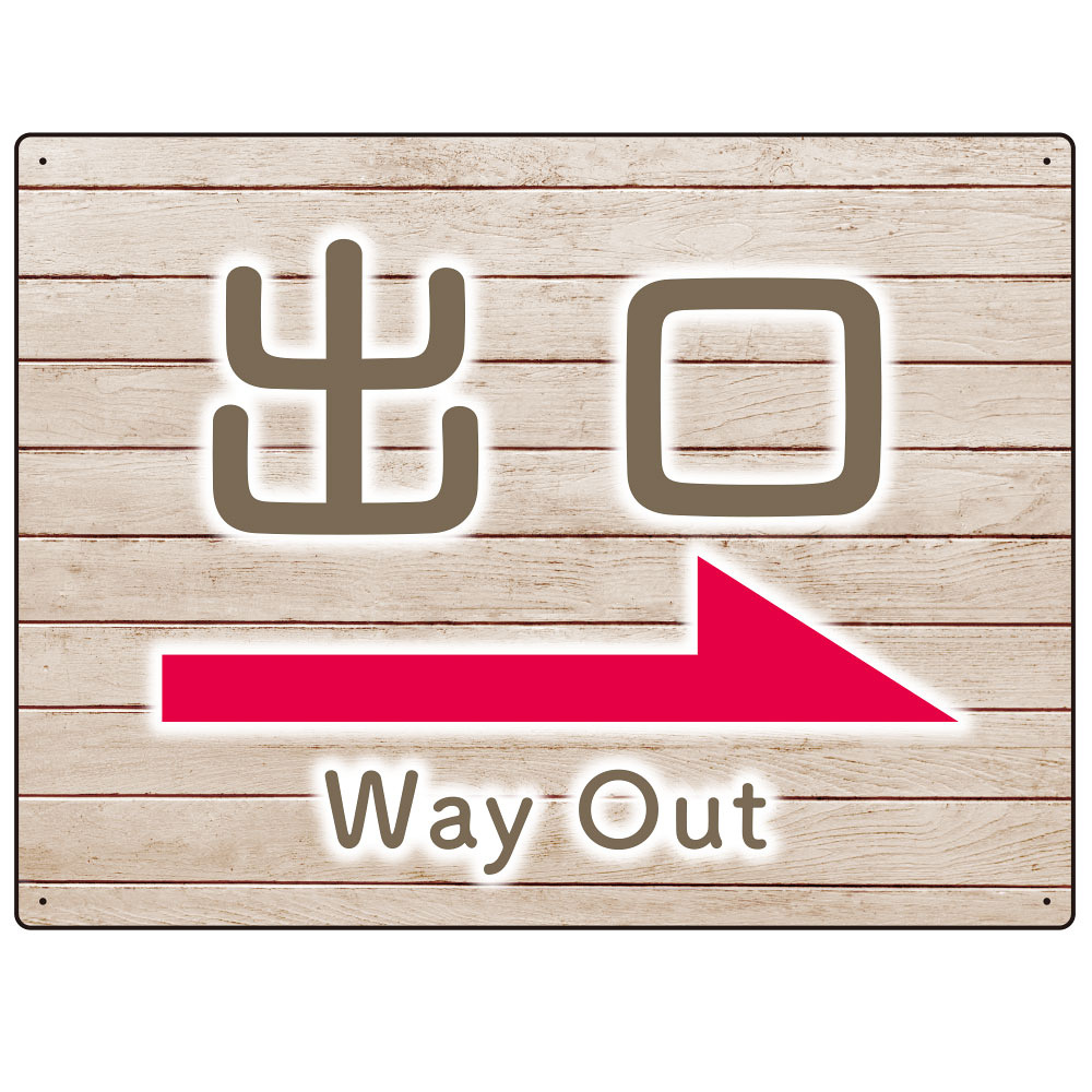 和み系木目調デザイン オリジナル プレート看板 出口/右矢印 W600×H450 アルミ複合板 (SP-SMD502R-60x45A)