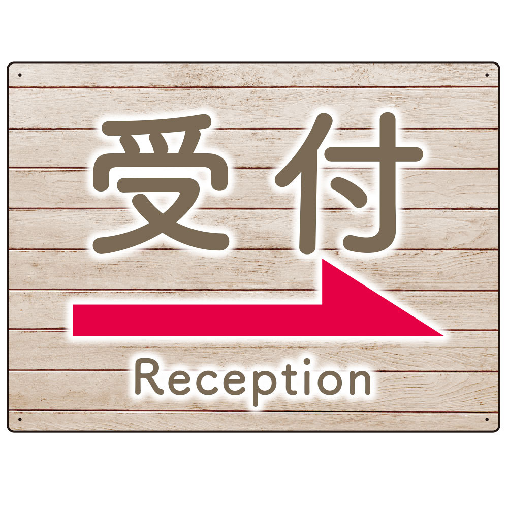 商品説明:和み系木目調デザイン オリジナル プレート看板 受付/右矢印 W600×H450 アルミ複合板 (SP-SMD503R-60x45A)
