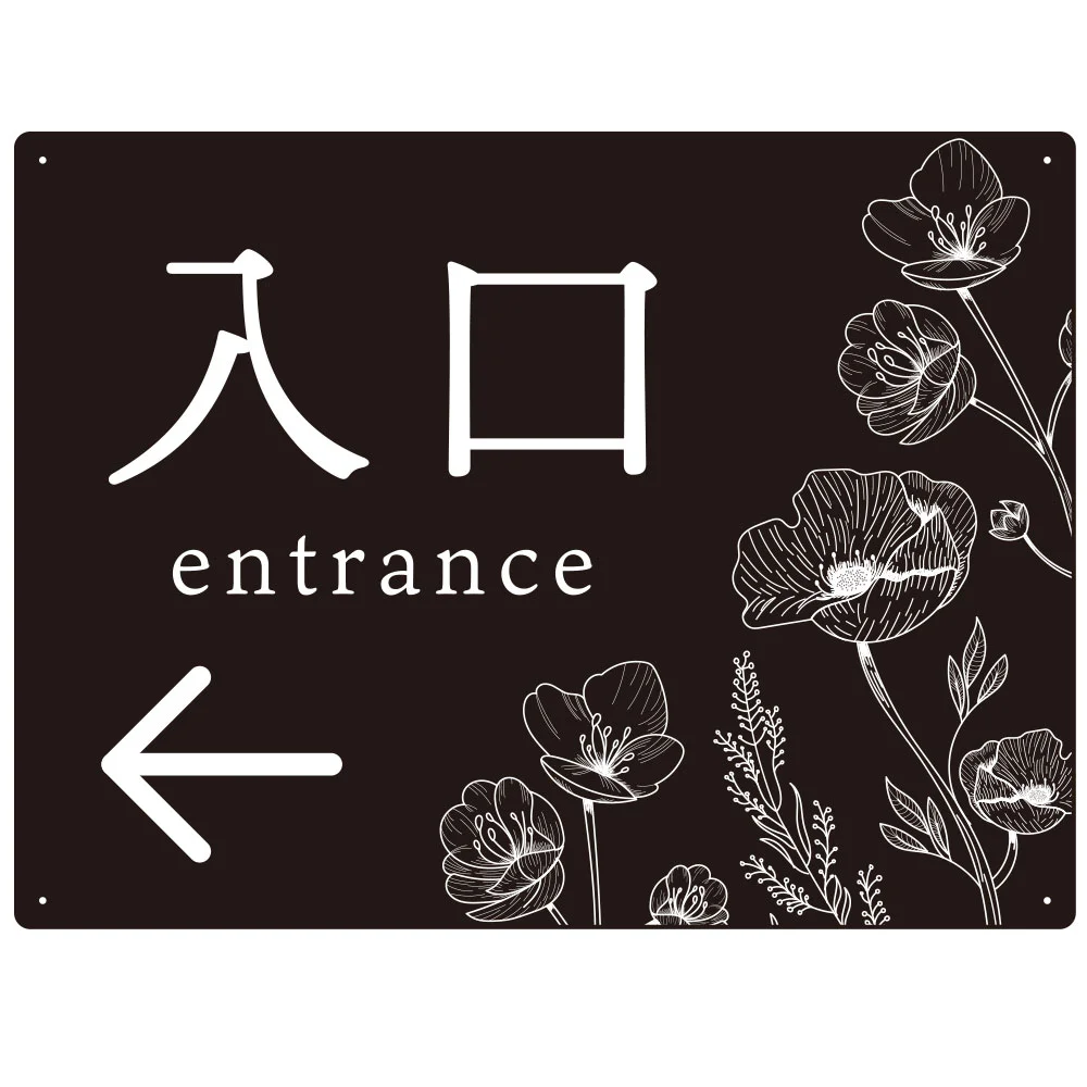 出入り口誘導 フラワーシルエット/モノトーンデザイン オリジナル プレート看板 入口/左矢印 W600×H450 アルミ複合板 (SP-SMD504L-60x45A)