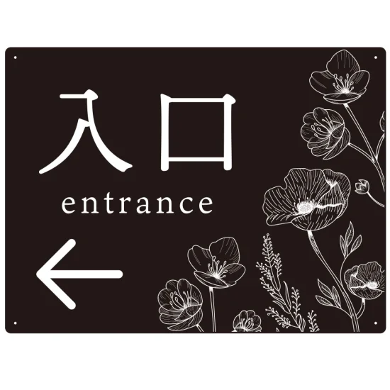 - 出入り口誘導 フラワーシルエット/モノトーンデザイン オリジナル プレート看板