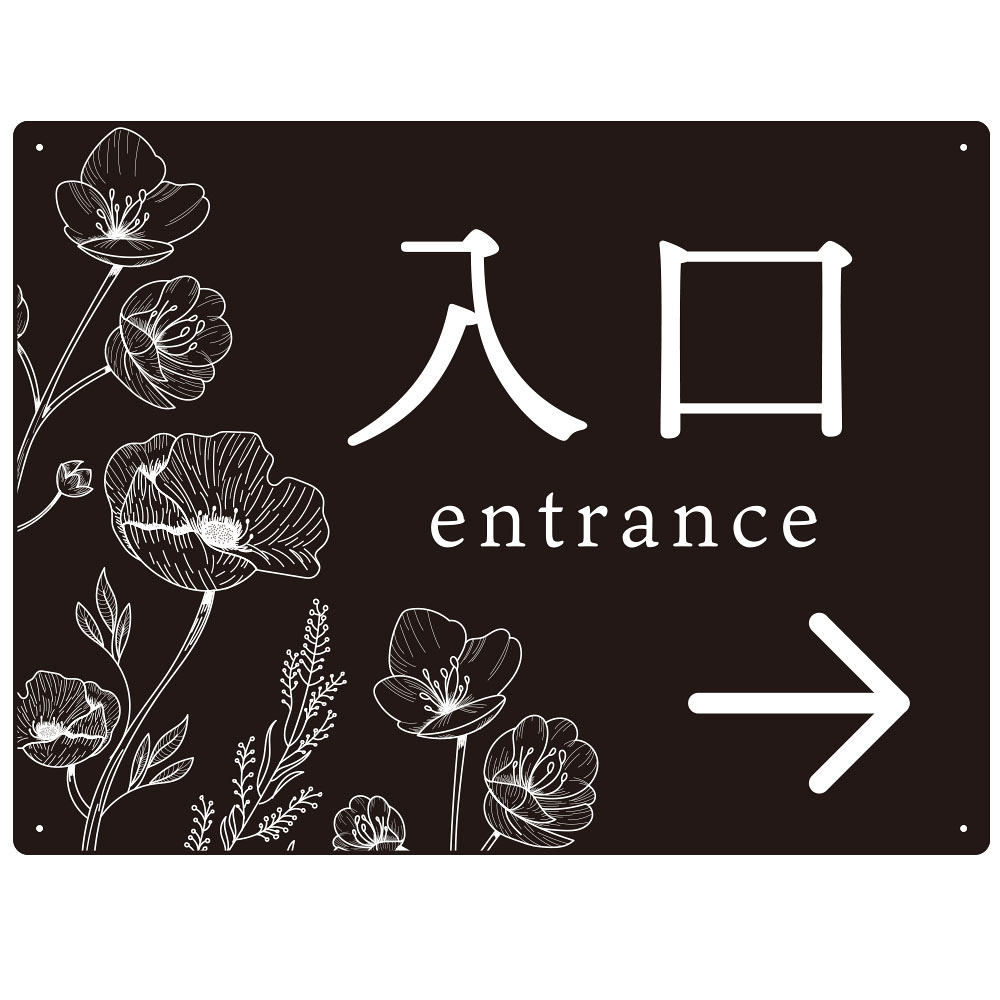 出入り口誘導 フラワーシルエット/モノトーンデザイン オリジナル プレート看板 入口/右矢印 W600×H450 エコユニボード (SP-SMD504R-60x45U)