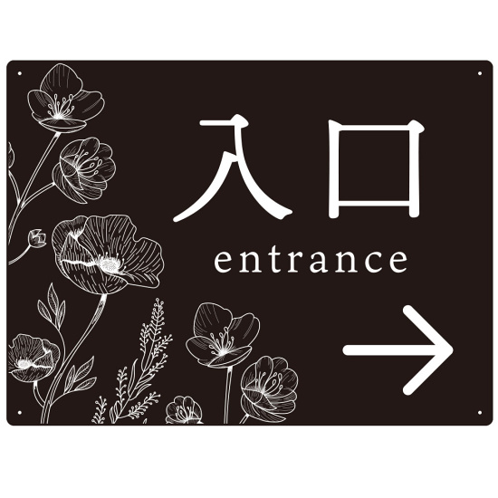 商品説明:出入り口誘導 フラワーシルエット/モノトーンデザイン オリジナル プレート看板 入口/右矢印 W600×H450 エコユニボード (SP-SMD504R-60x45U)