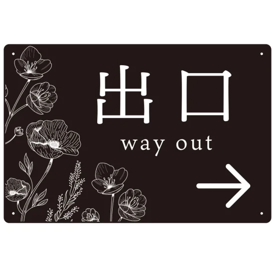 よくある質問:出入り口誘導 フラワーシルエット/モノトーンデザイン オリジナル プレート看板 出口/右矢印 W450×H300 アルミ複合板 (SP-SMD505R-45x30A)