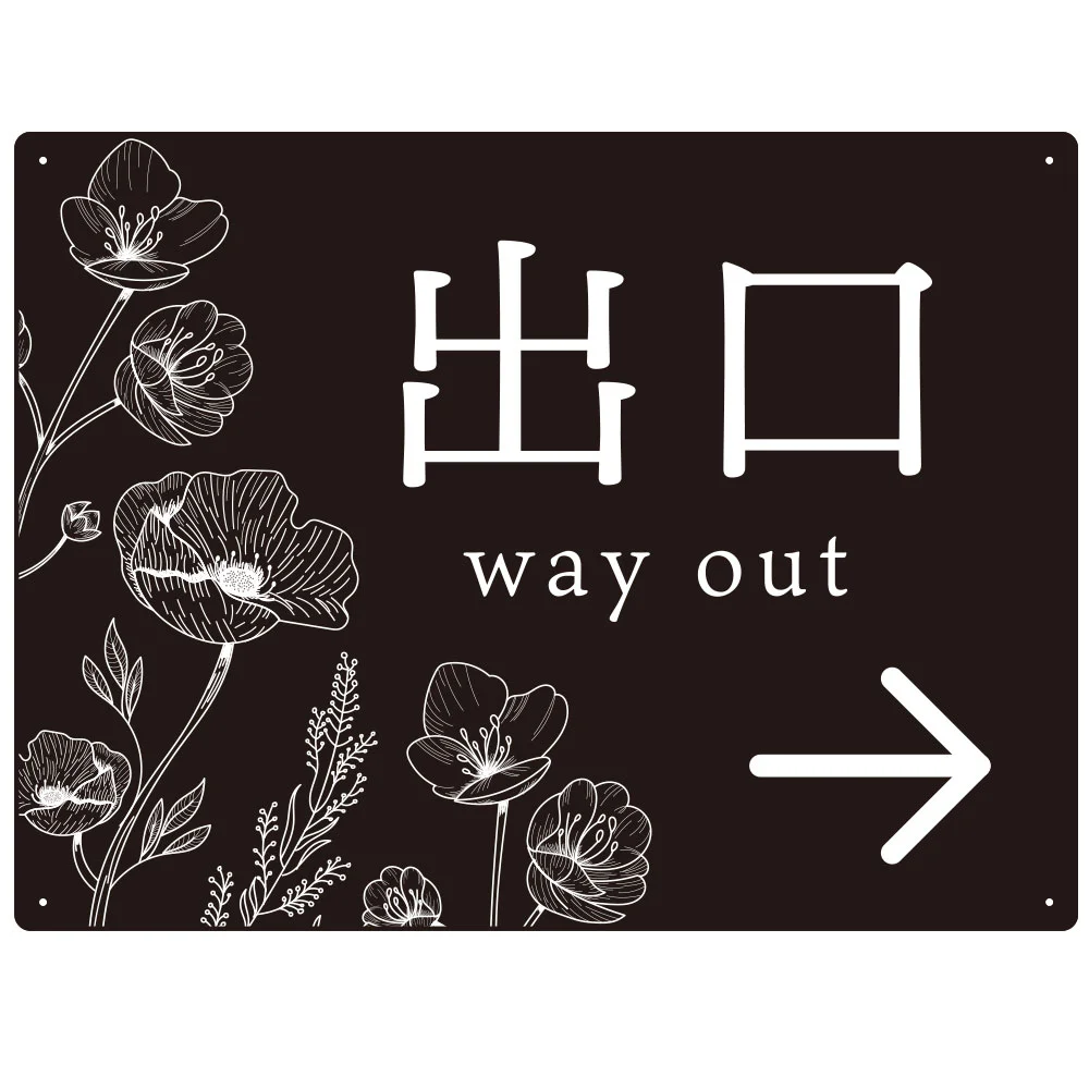 - 出入り口誘導 フラワーシルエット/モノトーンデザイン オリジナル プレート看板 出口/右矢印 W600×H450 アルミ複合板 (SP-SMD505R-60x45A)