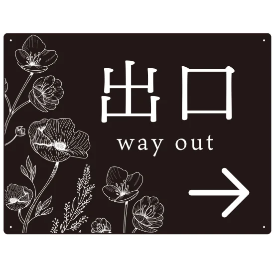 よくある質問:出入り口誘導 フラワーシルエット/モノトーンデザイン オリジナル プレート看板 出口/右矢印 W600×H450 アルミ複合板 (SP-SMD505R-60x45A)