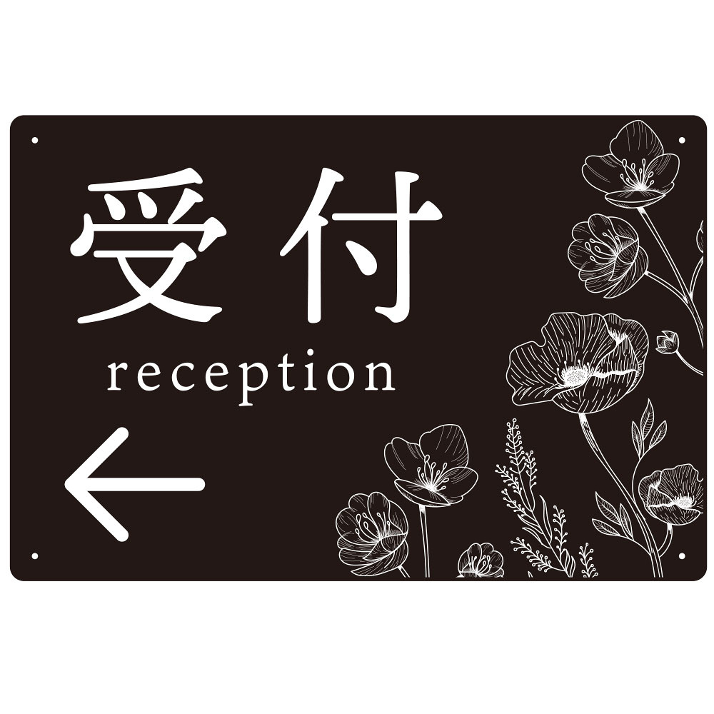 商品説明:出入り口誘導 フラワーシルエット/モノトーンデザイン オリジナル プレート看板 受付/左矢印 W450×H300 エコユニボード (SP-SMD506L-45x30U)