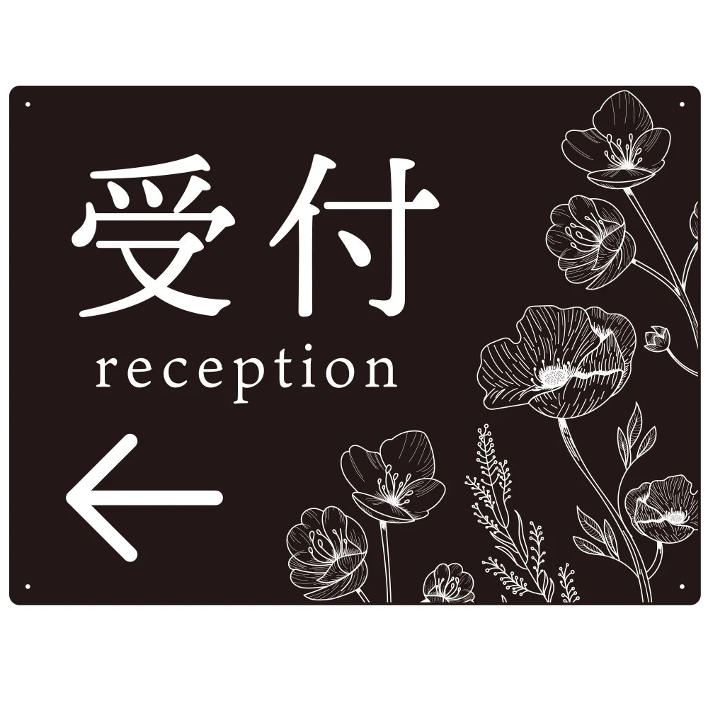 出入り口誘導 フラワーシルエット/モノトーンデザイン オリジナル プレート看板 受付/左矢印 W600×H450 アルミ複合板 (SP-SMD506L-60x45A)