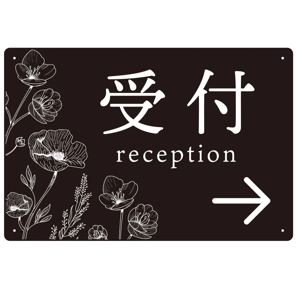 - 出入り口誘導 フラワーシルエット/モノトーンデザイン オリジナル プレート看板 受付/右矢印 W450×H300 アルミ複合板 (SP-SMD506R-45x30A)