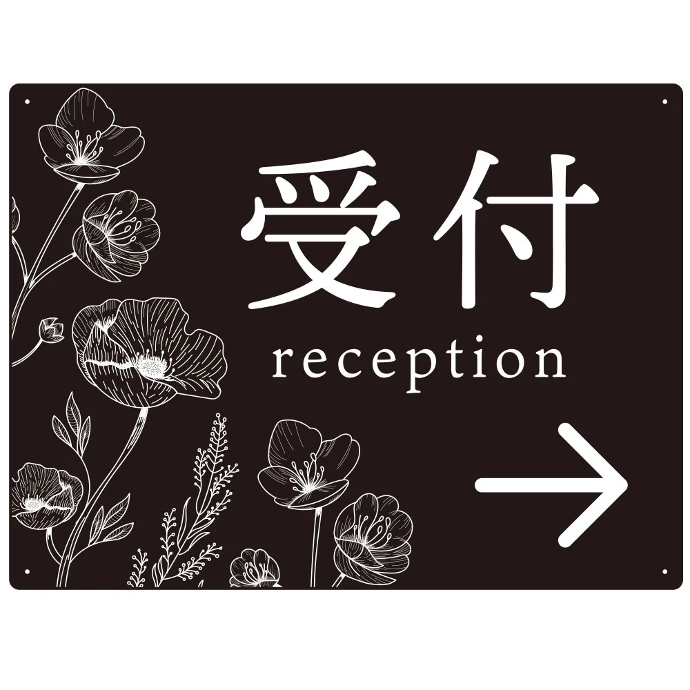 出入り口誘導 フラワーシルエット/モノトーンデザイン オリジナル プレート看板 受付/右矢印 W600×H450 アルミ複合板 (SP-SMD506R-60x45A)