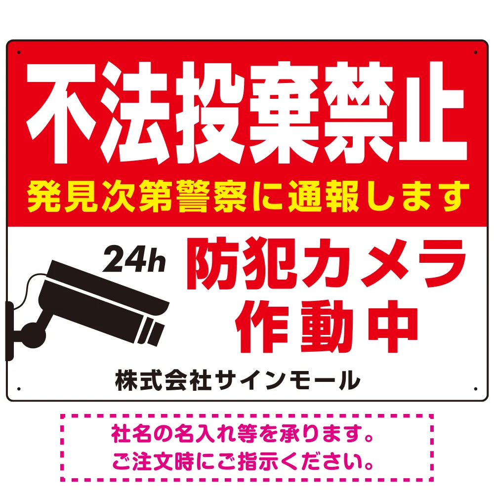 - 不法投棄禁止・防犯カメラ 赤強調デザイン プレート看板